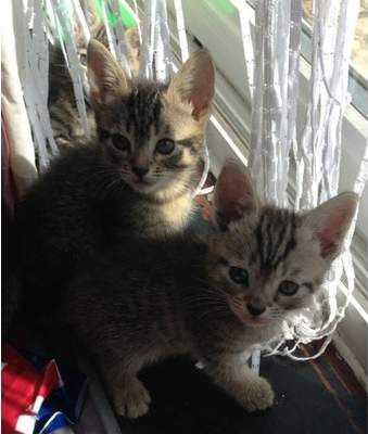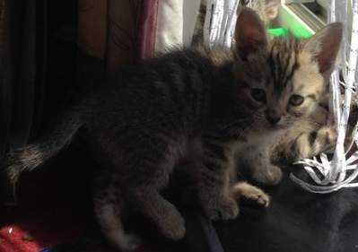 Description: I have 6 kittens one black, one black and white and four tabby ones, they are all feeding well, on wet and dry food, they are all litter trained and they are ready to go now!! I have only got boys left!
