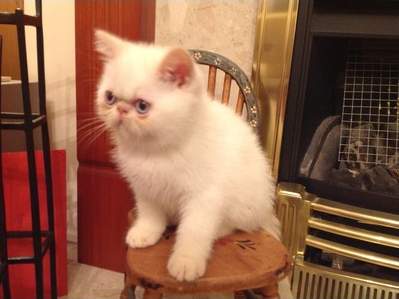 Description: Exotic cream colour point female kitten for sale.Excellent Pedigree,Sire grand Champion.G C C F registered,4 generation pedigree,vaccinated,vet checked,brought up in loving home with other pets. Litter trained and come with sample foods and scent blanket ect... Deposit secures,ready to go to forever home from January 10th.