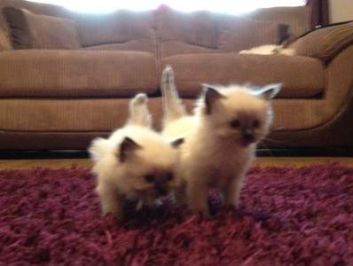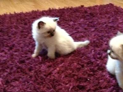 Description: Traditional Ragdoll kittens 2 seal colourpoint girls and 1 blue colourpoint boy left. Gccf reg on non active register, fully inoculated, vet checked, wormed and treated with frontline. Both parents tested negative for the known gene HCM and PKD. They will take with them to they're new home four weeks complementary insurance, a four generation pedigree and a kitten pack. home reared with dogs and children. Very playful, lovely natured and litter trained, Mum is a family pet so can also be seen. Ready 8th Sep. Deposit can be taken to secure.